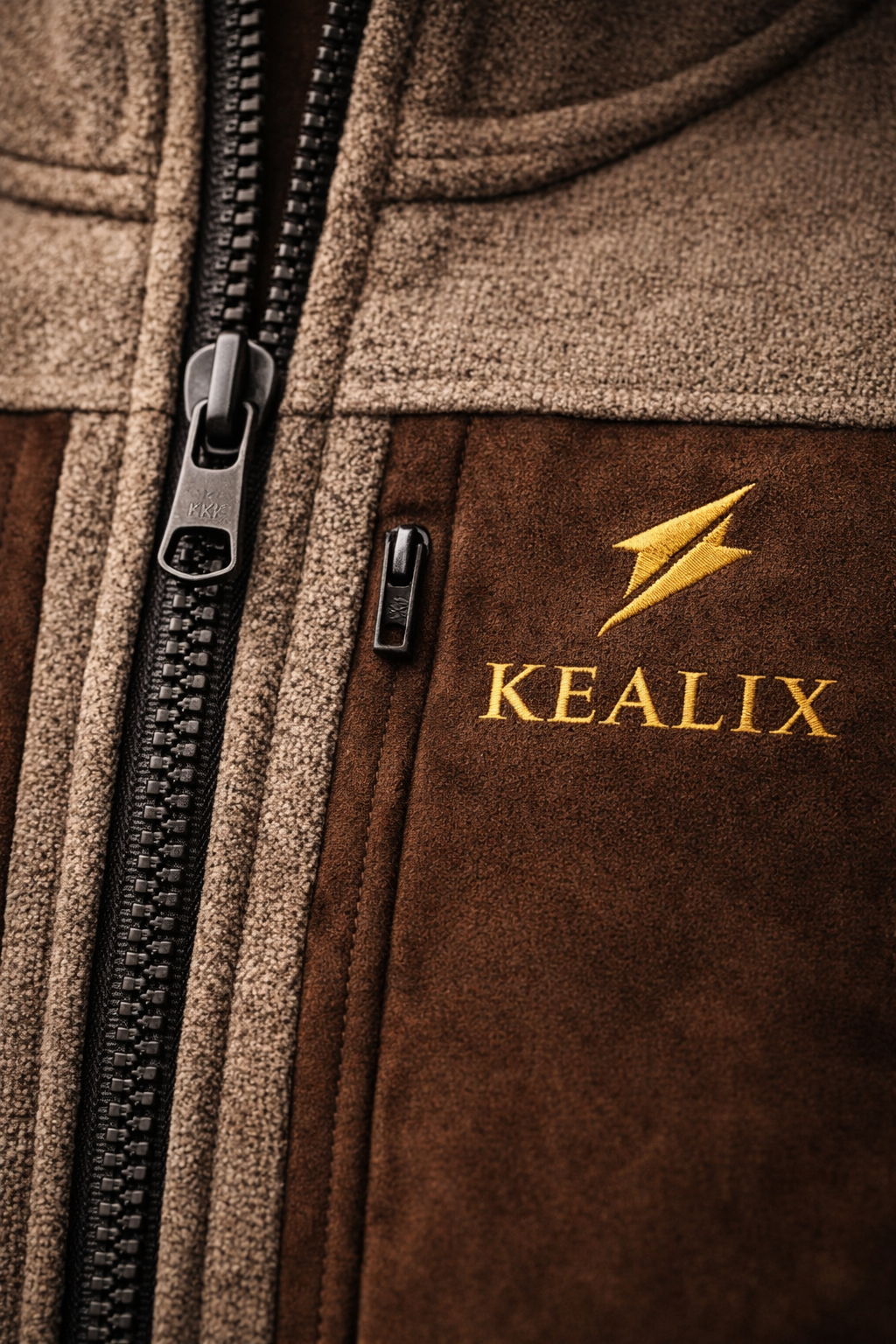 Men’s Premium Two-Tone Quarter-Zip Fleece Pullover – Brown/Beige